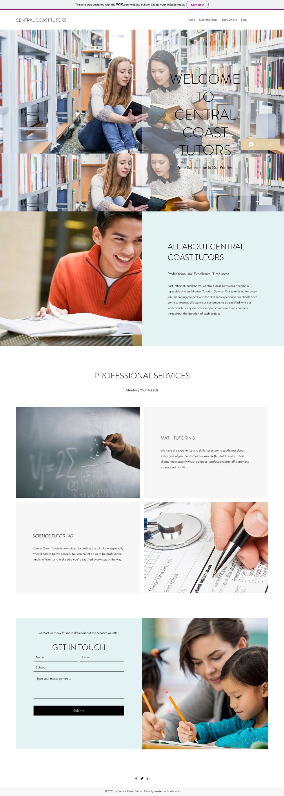 Website prototype for local tutoring business on the Central Coast of California. Includes information on local tutors and options to book online.